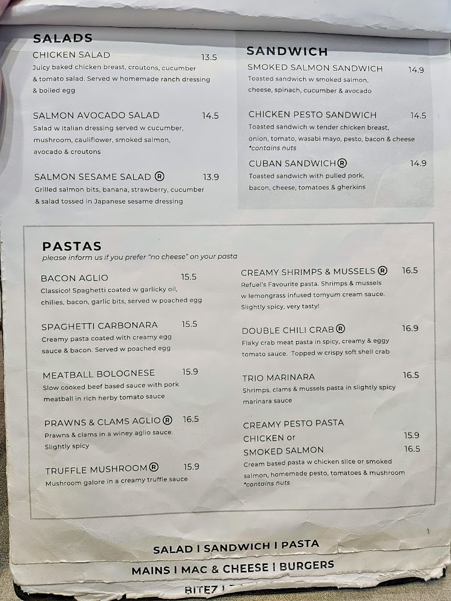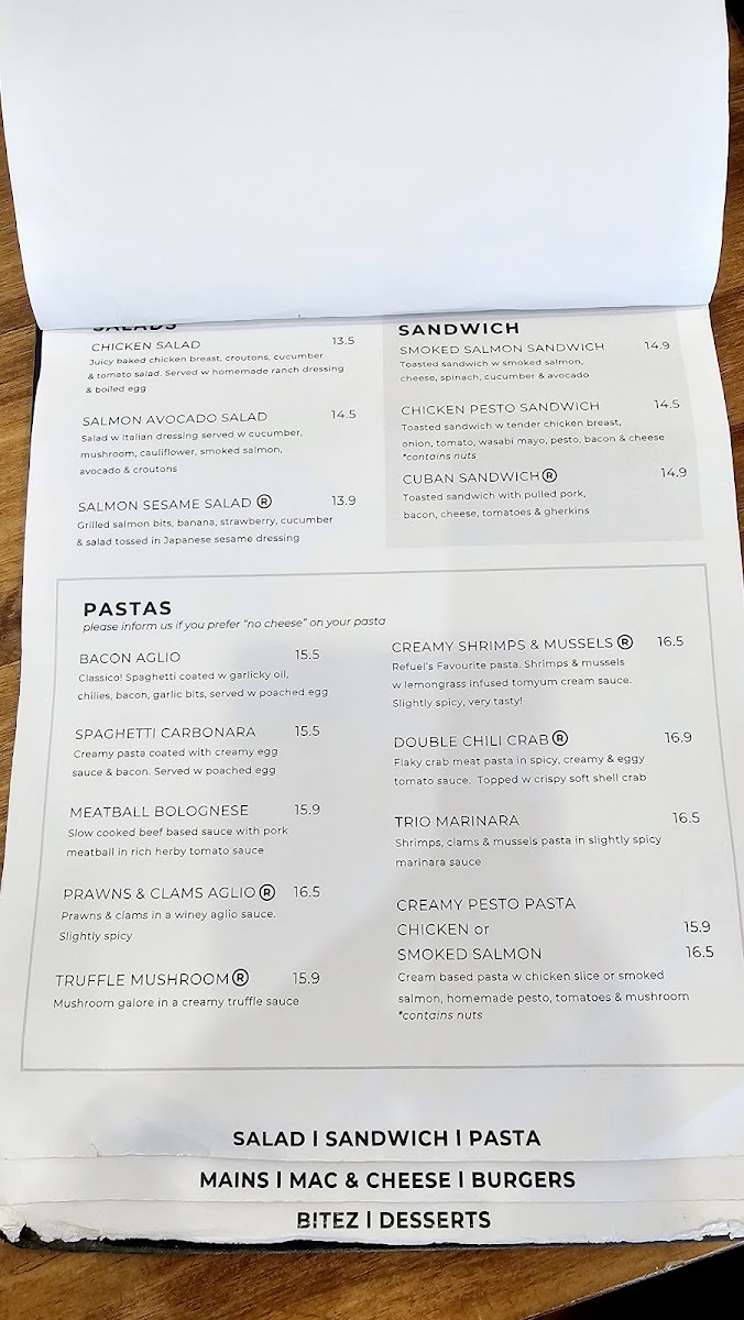 Pasta options feature a variety of flavorful dishes including Double Chili Crab Pasta with spicy tomato egg sauce and crispy soft shell crab, Truffle Mushroom Pasta with assorted mushrooms and cream, and Creamy Shrimps, a Thai-inspired spicy cream-based pasta with shrimps and chilies.